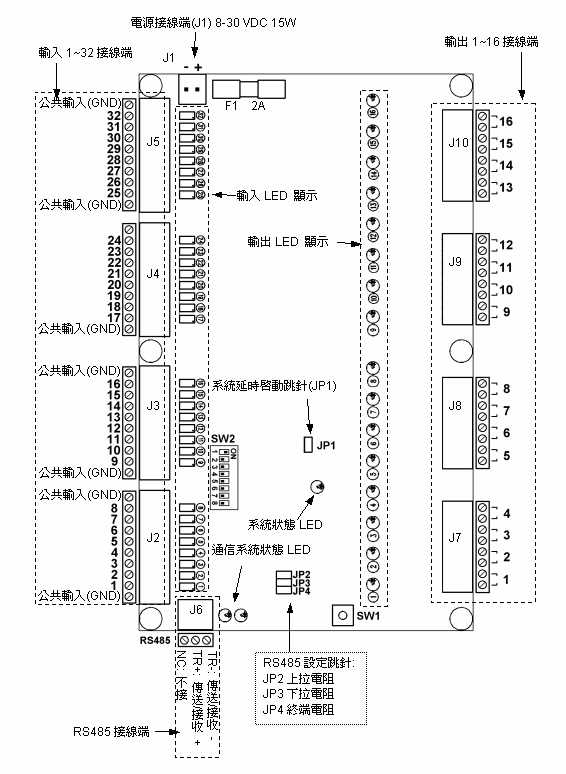 路干接輸入及LED 狀態顯示. (輸入共地)