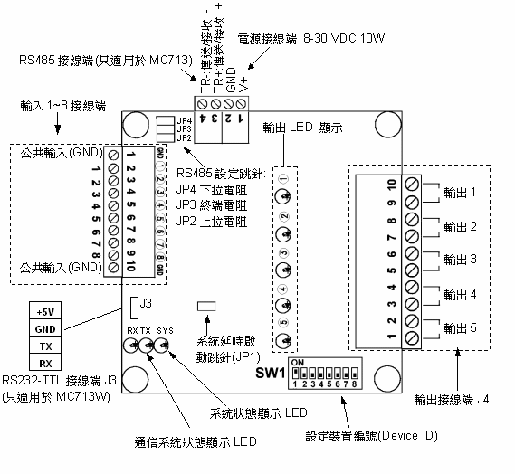 8路幹接輸入及LED 狀態顯示. (輸入公地)
